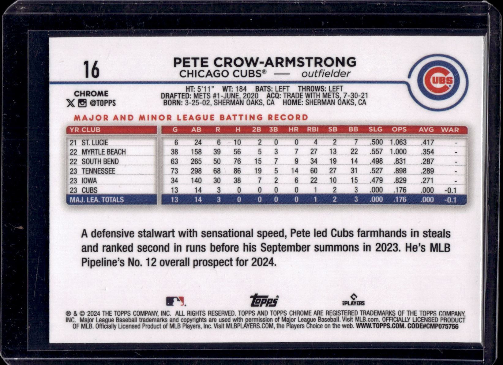 Pete Crow-Armstrong Lightboard Logo Refractor RC SP 2024 Topps Chrome #16