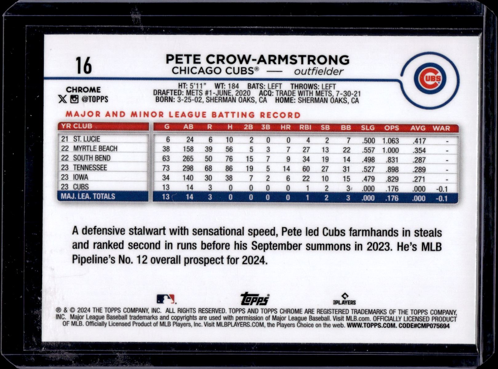 Pete Crow-Armstrong Xfractor RC 2024 Topps Chrome #16