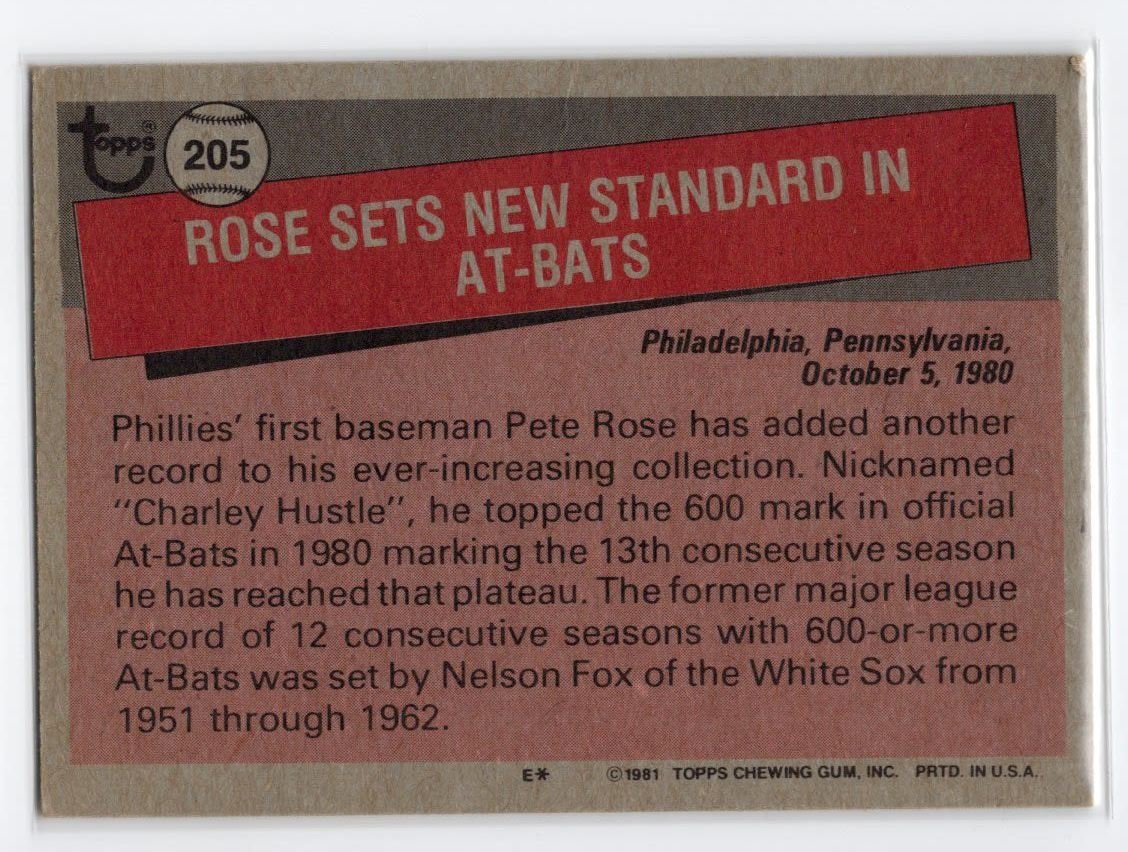 Pete Rose 1981 Topps Rose Sets New Standard Card number 205