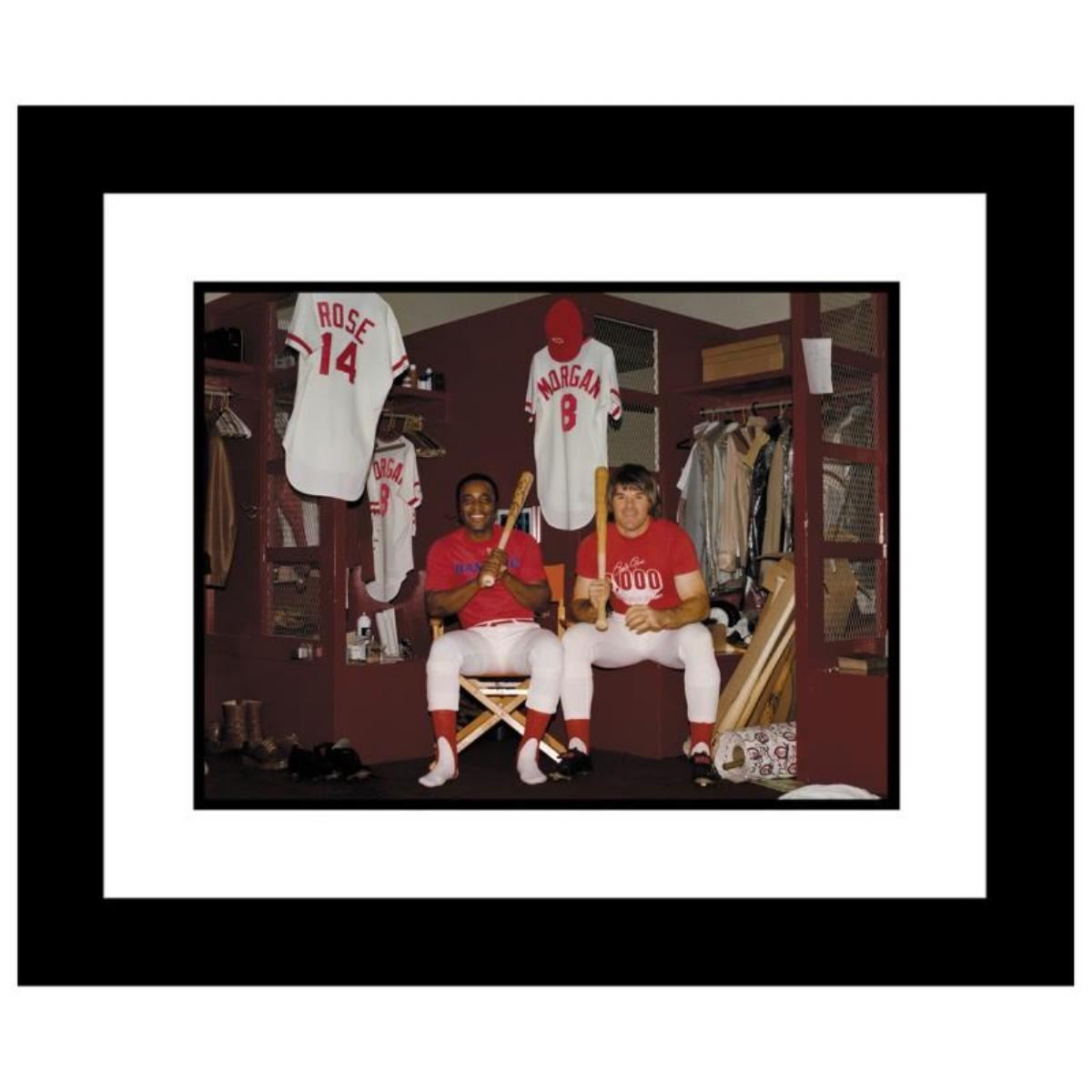 "Pete Rose & Morgan in Clubhouse" is an archival photograph that is autographed by Pete Rose and Joe Morgan! This piece comes framed. Includes Certificate of Authenticity. Measures approx. 26" x 22" (frame), 20" x 16" (image).