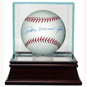 Pete Rose won three World Series rings, three batting titles, one Most Valuable Player Award, two Gold Gloves, the Rookie of the Year Award, and made 17 All-Star appearances at an unequaled five different positions (2B, LF, RF, 3B, and 1B). Rose's nickname, Charlie Hustle, was given to him for his play beyond the "call of duty" while on the field. Pete Rose has hand autographed this Official Major League Baseball. Rare Full Name Autograph. Mounted Memories Hologram and Certificate of Authenticity from Athlon Sports. Note: Glass Display Case shown IS included