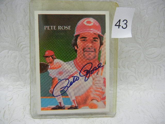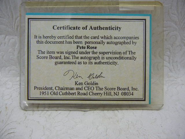 Pete Rose Signe Baseball Card W/COA,By Score board