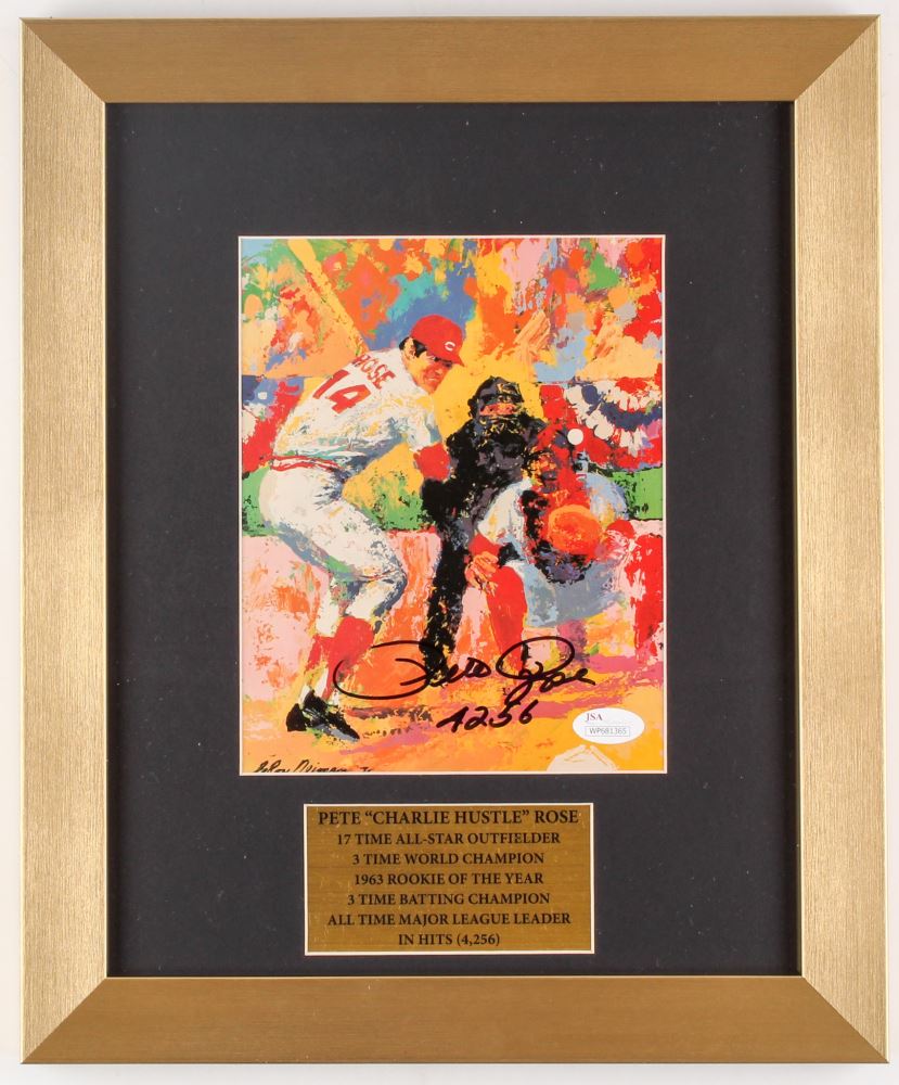 Custom framed painting by LeRoy Neiman measures 12" x 14.5" in size and has been hand-signed and inscribed in black felt-tip pen by Pete Rose.