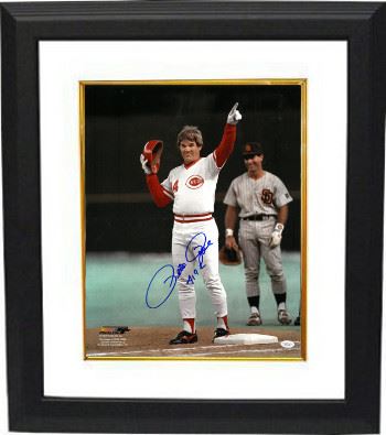 Pete Rose won three World Series rings, three batting titles, one Most Valuable Player Award, two Gold Gloves, the Rookie of the Year Award, and made 17 All-Star appearances at an unequaled five different positions (2B, LF, RF, 3B, and 1B). Rose's nickname, Charlie Hustle, was given to him for his play beyond the "call of duty" while on the field. Pete Rose has hand autographed this Cincinnati Reds 16x20 Photo. JSA Hologram and Certificate of Authenticity. Custom White Mat and Premium Black Color Framed as shown.