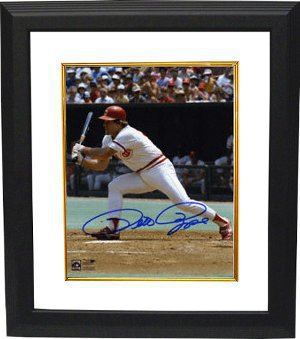 Pete Rose won three World Series rings, three batting titles, one Most Valuable Player Award, two Gold Gloves, the Rookie of the Year Award, and made 17 All-Star appearances at an unequaled five different positions (2B, LF, RF, 3B, and 1B). Rose's nickname, Charlie Hustle, was given to him for his play beyond the "call of duty" while on the field. Pete Rose has hand autographed this Cincinnati Reds Classic Swing 8x10 Photo. Custom White Mat and Premium Black Color Frame. Mounted Memories Hologram and Certificate of Authenticity.