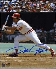 Pete Rose won three World Series rings, three batting titles, one Most Valuable Player Award, two Gold Gloves, the Rookie of the Year Award, and made 17 All-Star appearances at an unequaled five different positions (2B, LF, RF, 3B, and 1B). Rose's nickname, Charlie Hustle, was given to him for his play beyond the "call of duty" while on the field. Pete Rose has hand autographed this Cincinnati Reds Classic Swing 8x10 Photo. Mounted Memories Hologram and Certificate of Authenticity.