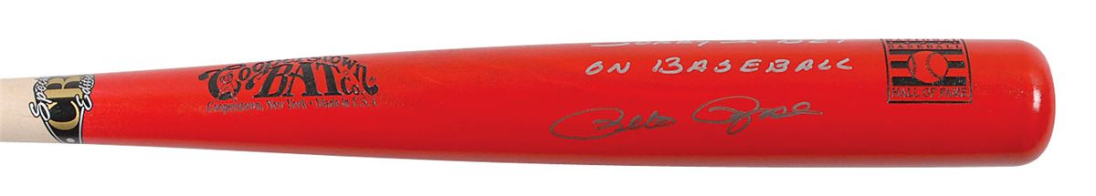 Official Cooperstown Bat Co. Baseball hall of Fame baseball bat signed in silver ink on the barrel, “Sorry I bet on baseball. Pete Rose.” In very fine condition.