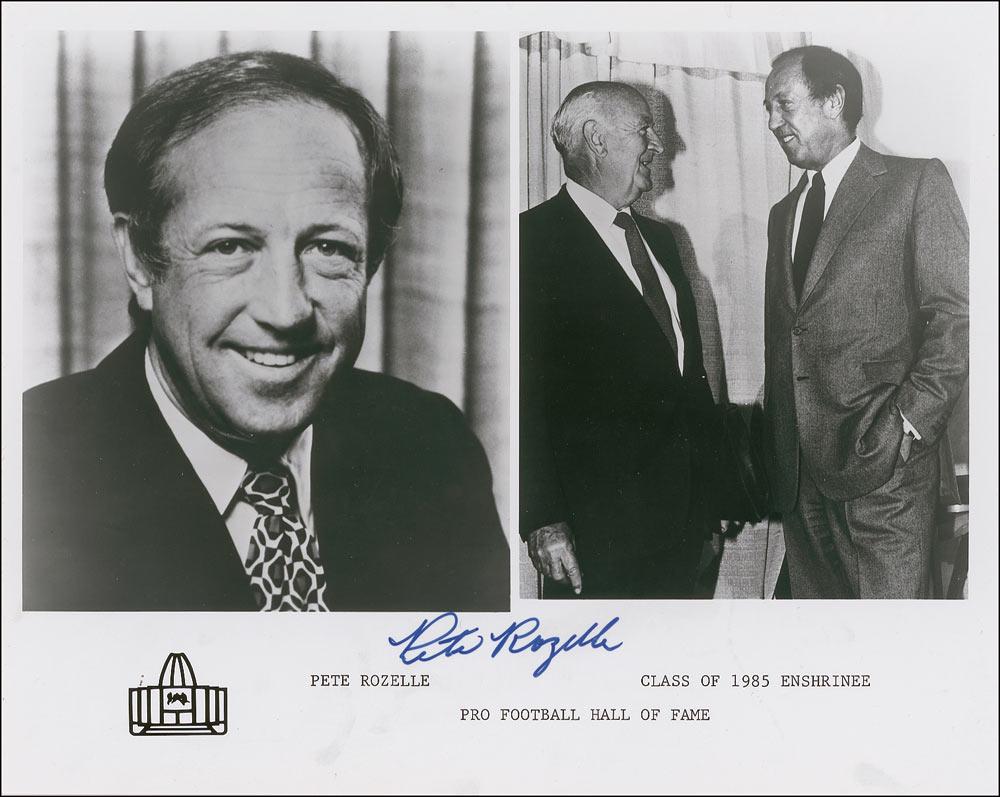 Football Hall of Famer (1926–1996) who served as NFL commissioner from 1960 to 1989. Glossy 10 x 8 composite Hall of Fame enshrinement photo, signed in blue felt tip. In fine condition.