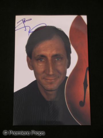 For all you fans of The Who, this is a large size, autographed glossy color photo of guitarist Pete Townsend. The photo features a close-up shot of Mr. Townshend next to his guitar, and is signed in blue ink on upper left corner. The autograph was obtained by a gentleman who has been collecting autographs for over 20 years. (measures approx. 8" x 12")