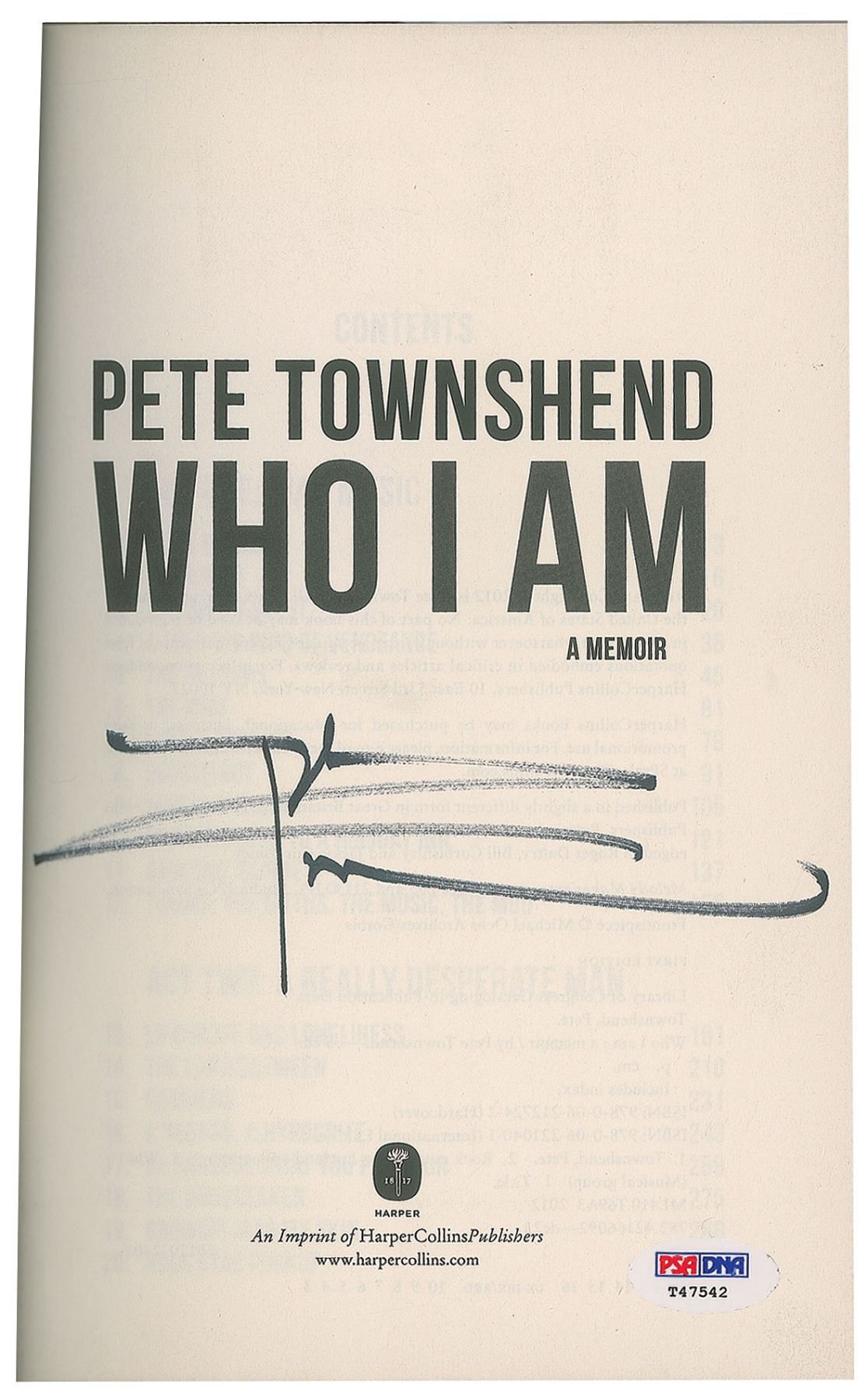 Two books, both hardcovers with dust jackets: Who I Am by Pete Townshend, signed on the title page in black felt tip; and Raga Mala: An Autobiography, boldly signed on the title page by Ravi Shankar. In fine condition, with PSA/DNA labels affixed to the title pages. Accompanied by certificates of authenticity from PSA/DNA for both.