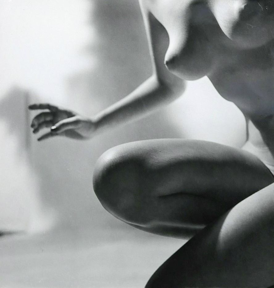 abstract nude, gelatin silver print, ca. 1950s to 1960s. Signed in pencil on verso. Basch's red studio stamp on verso as well. 8x8 inches.