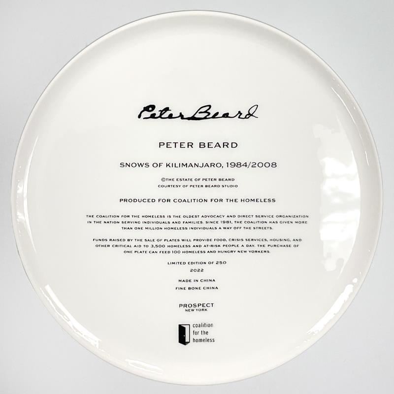 "Snows of Kilimanjaro" is a limited edition plate by Peter Beard (1938-2020). This plate is custom framed and floated on linen. Includes Letter of Authenticity. Measures approx. 15.5" x 15.5" (frame), 11" (plate diameter).