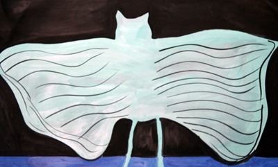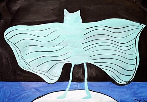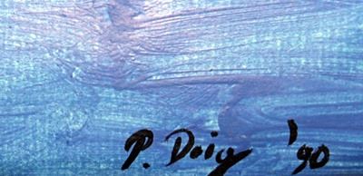 Oil on paper in the manner of Peter Doig - Vampire, bearing the signature. Unframed dimensions approx 16 x 13 inches.