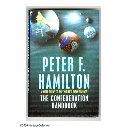 <B>Peter F. Hamilton - "Night's Dawn" Hard Cover, Group of 4 (MacMillan, 1985-2000)</B></I> The "Night's Dawn" trilogy by Peter F. Hamilton is the focus of this non-stop-reading group lot. With over 3,700 pages (1,200,000 words), the "Night's Dawn" trilogy brought to life an entire galaxy of diverse planets and astonishing civilizations. Included in this lot are: <B>The Reality Dysfunction</B></I>, (first printing, 1996, signed by the author, ISBN 0-333-63427-6), <B>The Neutronium Alchemist</B></I> (first printing, 1997, signed by the author, ISBN 0-333-66935-5), and <B>The Naked God</B></I> (first printing, 1999, ISBN 0-333-68791-4). Also included in the lot is <B>The Confederation Handbook</B></I>, a vital guide to the "Night's Dawn" trilogy (first printing, 2000, signed by the author, ISBN 0-333-78588-6). Each copy is in Excellent condition with an Excellent condition dust jacket.