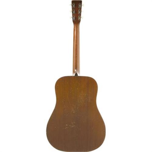 <B>Peter Fonda's Autographed '44 Martin D-18 From "Outlaw Blues."</B></I> After being featured prominently throughout the film <I>Outlaw Blues,</B></I> this classic Martin D-18 stayed in Peter's personal collection for 30 years. The case is covered with press pass stickers for the <I>Outlaw Blues</B></I> premiere, as well as two backstage pass stickers for the Crosby, Stills & Nash 1977 summer tour. Based on the character of the case and guitar, it is safe to say that this instrument has seen a lot of entertainment history at the actor's side. It is signed in black across the spruce top, which also bears the evidence of years of use in Peter's hands. The mahogany back and sides also show signs of heavy use by Fonda, while the ebony fingerboard is suprisingly clean for a guitar of this vintage. Its serial number (90110) and heavy bracings inside the body show that it is of late 1944 production. A beautiful and classic instrument, serial number 90110 (D-18). <B>Condition Report:</B> Heavy wear on body of guitar. No wood cracks, solid neck joint.<BR><BR><b>Shipping:</b> Recordings (<a target="_blank" href="http://www.heritageauctions.com/common/shipping.php">view shipping information</a>)