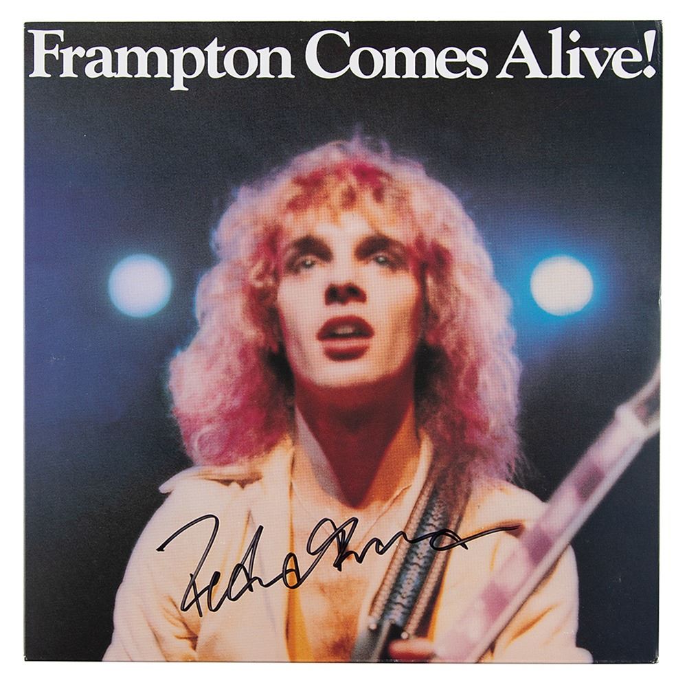 Frampton Comes Alive! album signed on the front cover in black felt tip by Peter Frampton. In very fine condition. The records are included.
