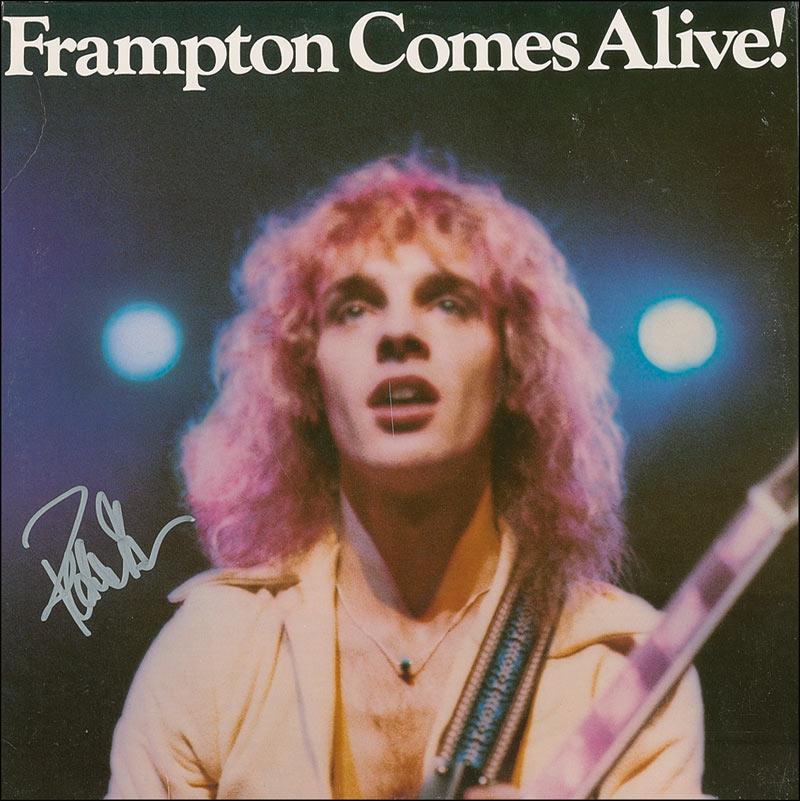 Frampton Comes Alive album signed on the front cover in silver ink. In fine condition, with a bit of scattered light cover wear. The record is included.