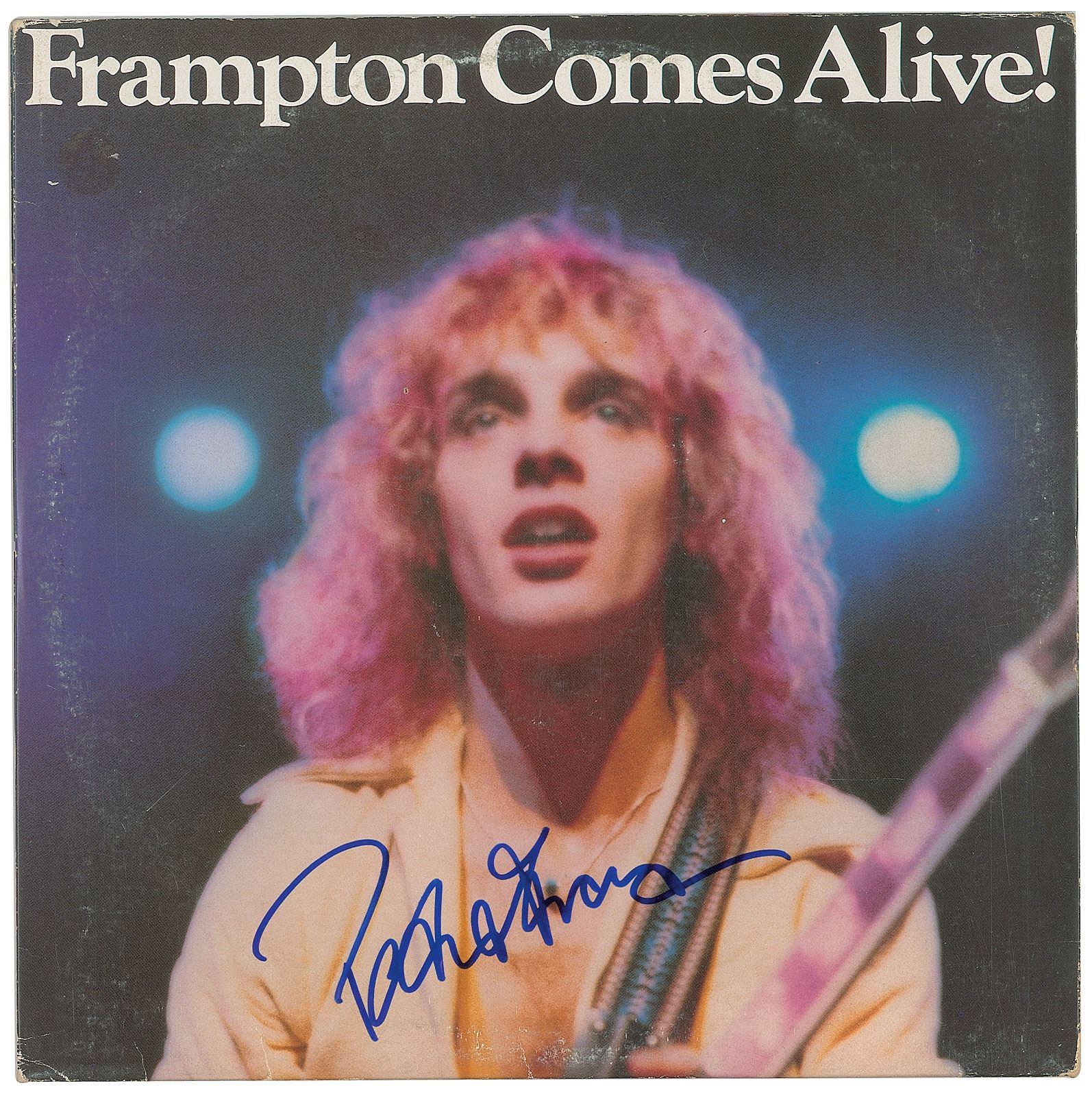Frampton Comes Alive! album signed on the front cover in blue felt tip by Peter Frampton. In fine condition, with light scuffing. The records are included.