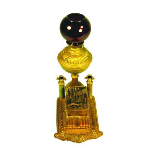Peter Hauptmann Cigar cutter and lighter, Cast Iron, Most of nickel gone otherwise good condition, 5 1/2 x 11 x 9 1/2 inches.