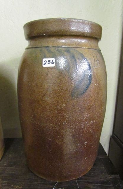 Peter Herrmann 19th Century Blue Decorated Wing design 1.5 gallon stoneware Crock with cracks