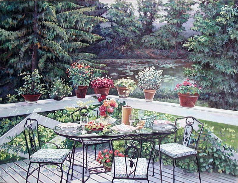 Heavily influenced by American Impressionism, Peter Ho’s works have revealed his sensibility to color, his strong foundation in traditional techniques and his new version of the modern world. This beautiful 30x40 in. oil on canvas is a typical backyard scene in the American suburbs and evokes pleasant memories of home. Unframed on stretchers. A Certificate of Authenticity will accompany this work. Domestic shipping and packing-$250. International depends on location.