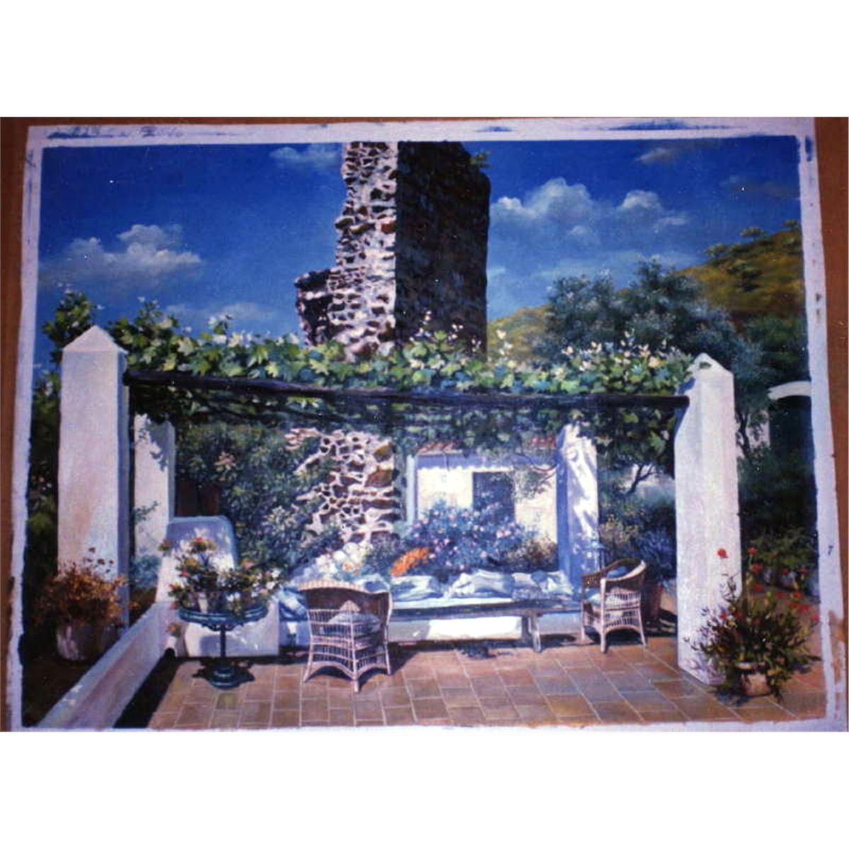 Heavily influenced by American Impressionism, Peter Ho’s works have revealed his sensibility to color, his strong foundation in traditional techniques and his new version of the modern world. This beautiful 30x40 in. oil on canvas is a patio scene in the American suburbs and evokes pleasant memories of home. Unframed on stretchers. A Certificate of Authenticity will accompany this work. Domestic shipping and packing-$225. International depends on location.