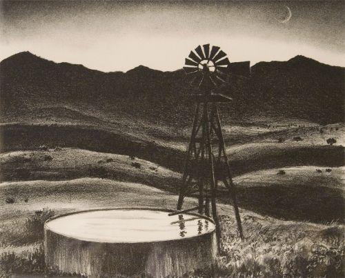 Peter Hurd (1904-1984). "The Windmill". 9" x 9 ½”. Lithograph. Signed in Plate. (est $200-300).