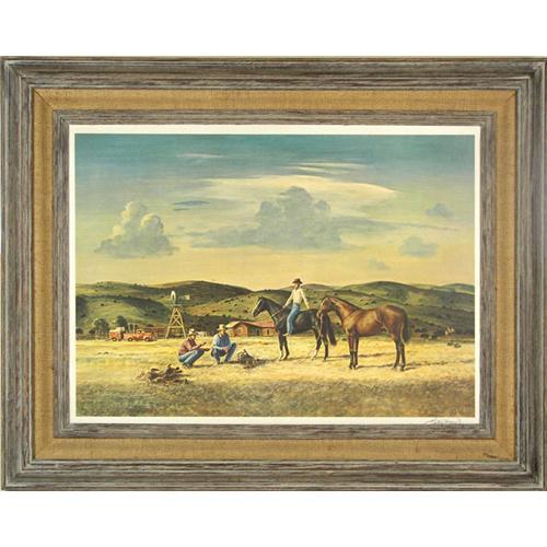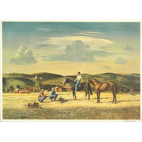 Peter Hurd (1904-1984) Print on Board, Cowboy Scene, image size 15 3/4" x 22 3/8", pencil signed