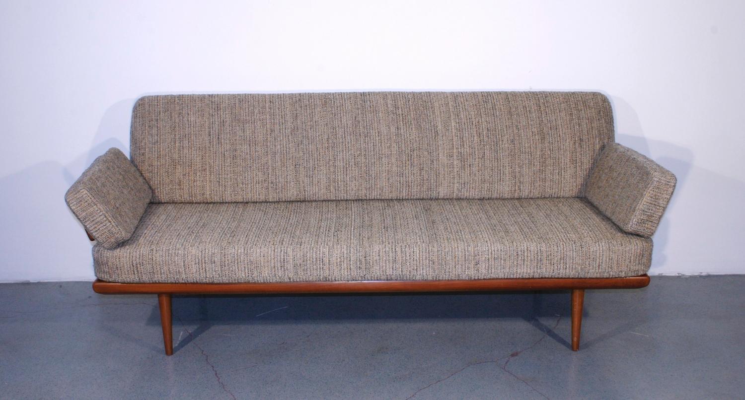 33h x 82w x 30d x 17h seat inches, teak, beige fabric, chrome