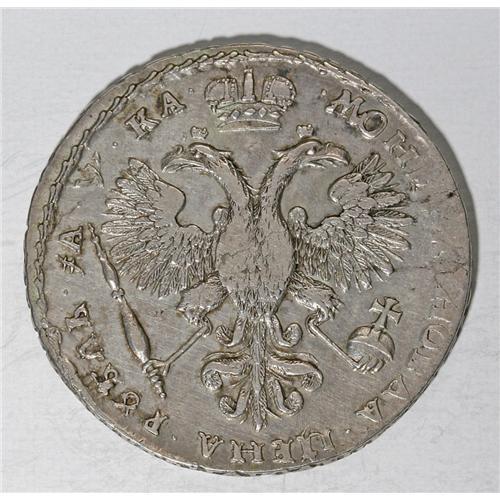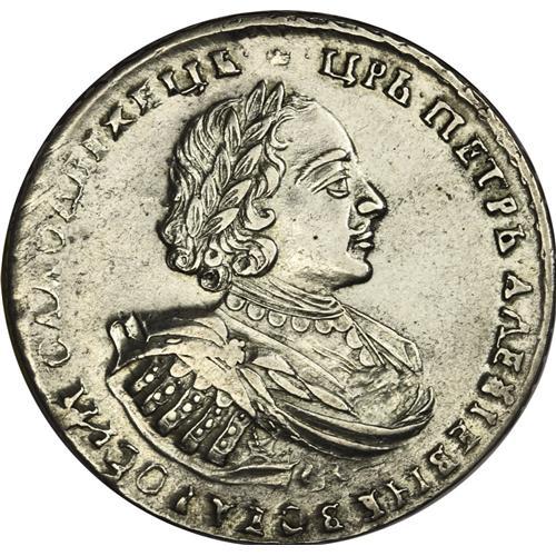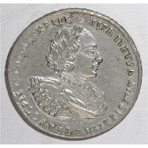 <B>Peter I. Rouble 1721,</B></I> no initials, Bit-446, about XF. Slight softness in the strike of the legends on both sides.<BR><I>From the Monedas Oro Collection</B></I><BR><BR><b>Shipping:</b> Coin/Currency (<a target="_blank" href="http://www.heritageauctions.com/common/shipping.php">view shipping information</a>)