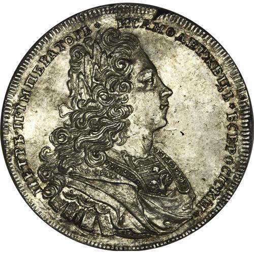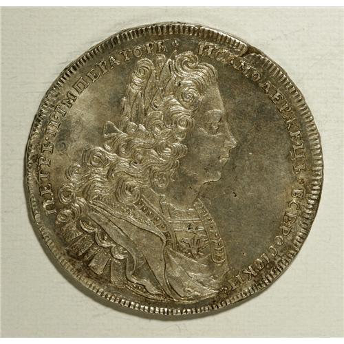 <B>Peter II. Rouble 1728, Moscow,</B></I> Bit-42, lustrous AU with an edge flaw, as made, at 1 o'clock. Superbly struck with a few minor obverse flan flaws. One of the nicer Peter II Roubles that we have seen. Very rare in this condition.<BR><I>From the Monedas Oro Collection</B></I><BR><BR><b>Shipping:</b> Coin/Currency (<a target="_blank" href="http://www.heritageauctions.com/common/shipping.php">view shipping information</a>)