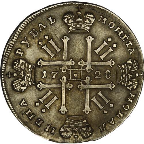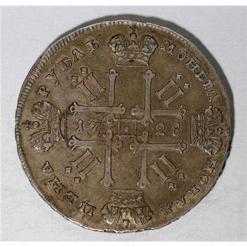 <B>Peter II. Rouble 1728, Moscow,</B></I> Bit-70 var., about XF with faint flan flaws in the right obverse field.<BR><BR><b>Shipping:</b> Coin/Currency (<a target="_blank" href="http://www.heritageauctions.com/common/shipping.php">view shipping information</a>)