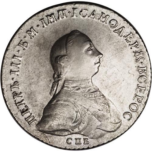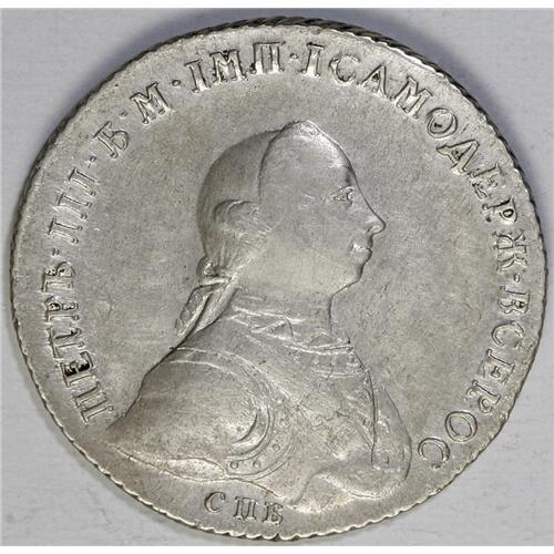 Peter III Rouble 1762-???, Bit-11, cleaned XF with ligh
