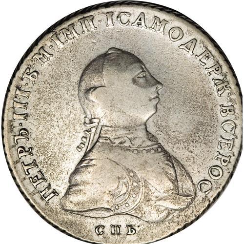 <B>Peter III. Rouble 1762 C??-H?,</B></I> Bit-11, VF with light porosity on both sides.<BR><BR><b>Shipping:</b> Coin/Currency (<a target="_blank" href="http://www.heritageauctions.com/common/shipping.php">view shipping information</a>)