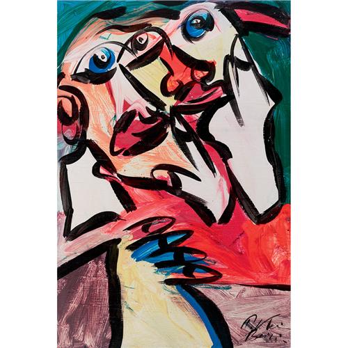 Peter Keil (German, 20th century), "Faces", c. 1983; oil/board, 30" x 20", signed and inscribed, "Berlin". Keil is with Elvira Bach, Rainer Fetting, and Georg Baselitz in the Grossen Wilden of Berlin. He studied with Otto Nagel, Berlin Academy of Fine