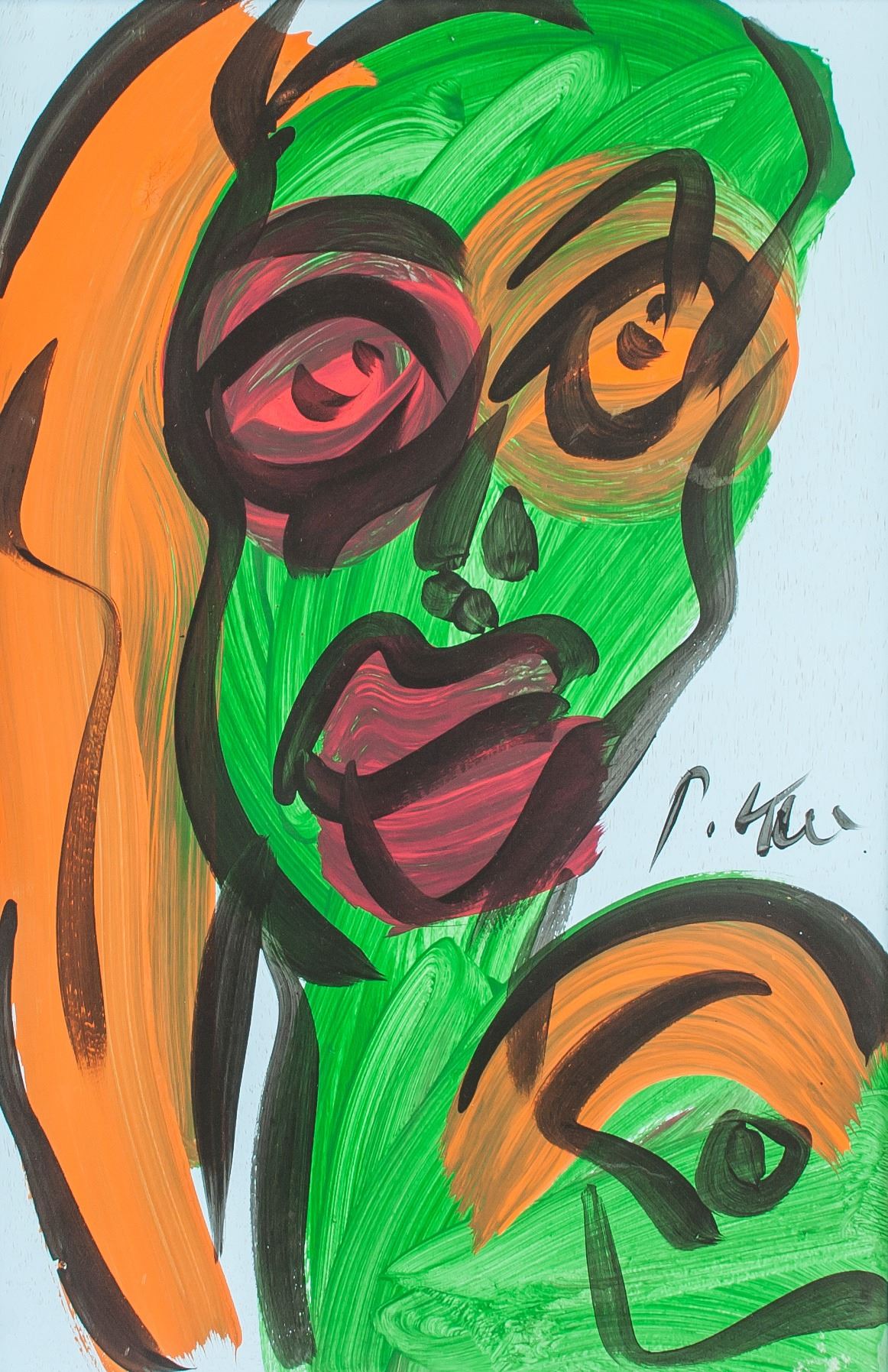 Oil on board, expressionist female portrait. Signed and attr. Peter Keil (b. 1942). Signature on lower tight corner. Peter Keil's style was influenced by German expressionism. In the works from his early Berlin years, he mainly focused on typical big city settings and characters on the fringes of society. The use of intensive to lurid colours and the absence of realistic representation have become characteristic of his painting style. In his paintings, the colour is applied with quick brushstrokes and occasionally with impasto techniques and the images are additionally abstracted by the use of Graffiti elements. Keil prefers to paint human figures, portraits, big city scenes, landscapes and still life images of flowers. His emotional way of painting is mainly driven by a desire for freedom from social constraints and conventions. PROVENANCE: Southern Ontario Estate. 23.5 x 15 in
