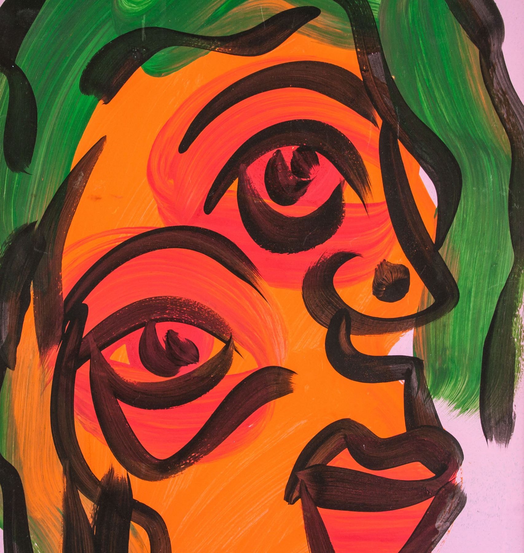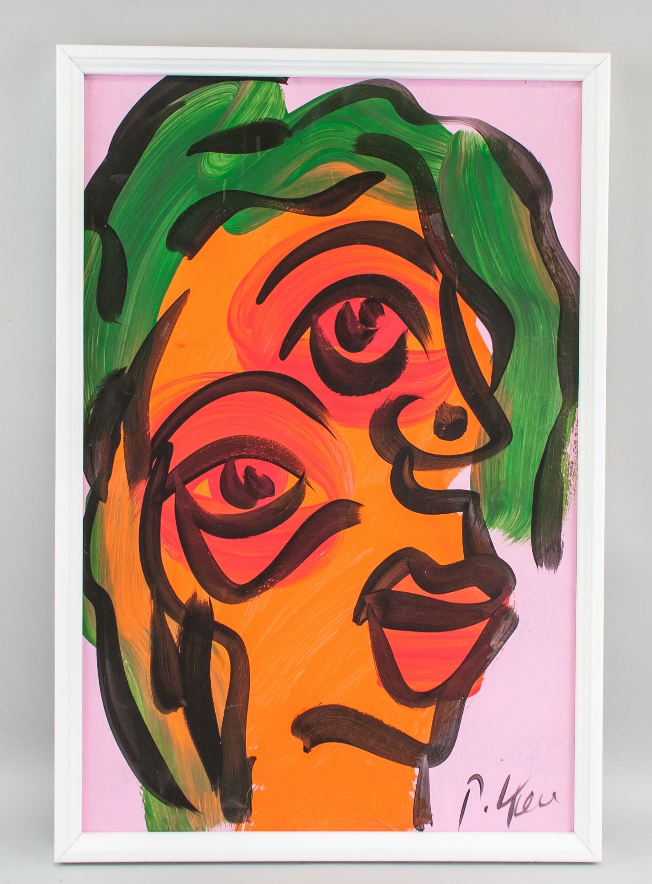 Oil on board, expressionist female portrait. Signed and attr. Peter Keil (b. 1942). Signature on lower tight corner. Peter Keil's style was influenced by German expressionism. In the works from his early Berlin years, he mainly focused on typical big city settings and characters on the fringes of society. The use of intensive to lurid colours and the absence of realistic representation have become characteristic of his painting style. In his paintings, the colour is applied with quick brushstrokes and occasionally with impasto techniques and the images are additionally abstracted by the use of Graffiti elements. Keil prefers to paint human figures, portraits, big city scenes, landscapes and still life images of flowers. His emotional way of painting is mainly driven by a desire for freedom from social constraints and conventions. PROVENANCE: Southern Ontario Estate. 23.5 x 15 in