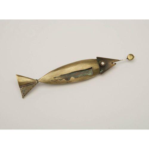 Artist Name: Peter Macchiarini<BR>Manufacturer: <BR>Description: "Swordfish" brooch<BR>Circa: Executed circa 1950<BR>Medium: Brass, Copper and Stone<BR>Signature: Stamped "Macchiarini"<BR>Measurements: 5.75"<BR>Edition: <BR>Notes: <BR>Literature / Provena