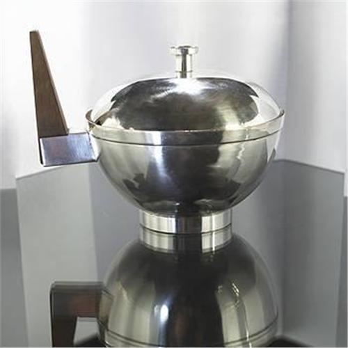 Peter Macchiarini<BR>lidded bowl<BR>USA, 1947<BR>sterling silver, rosewood<BR>7.75"w x 6"d x 6"h<BR>Impressed signature to underside of lid: [Macchiarini].<BR>Exhibited: <BR>San Francisco Metal Arts Guild Retrospective, 2003, Velvet Da Vinci Gallery<BR>Peter Macchiarini Retrospective, 2003, Museo Italiano, San Francisco<BR><BR><BR>