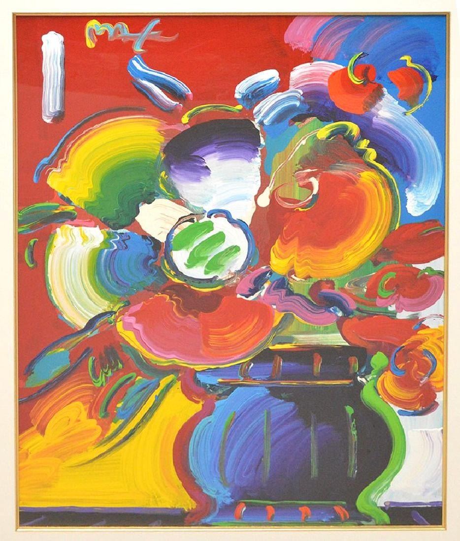 Peter Max: Roseville Bouquet #57, Heavy Acrylic Painting over Serigraph, signed upper left, Size: 40x30 inches.