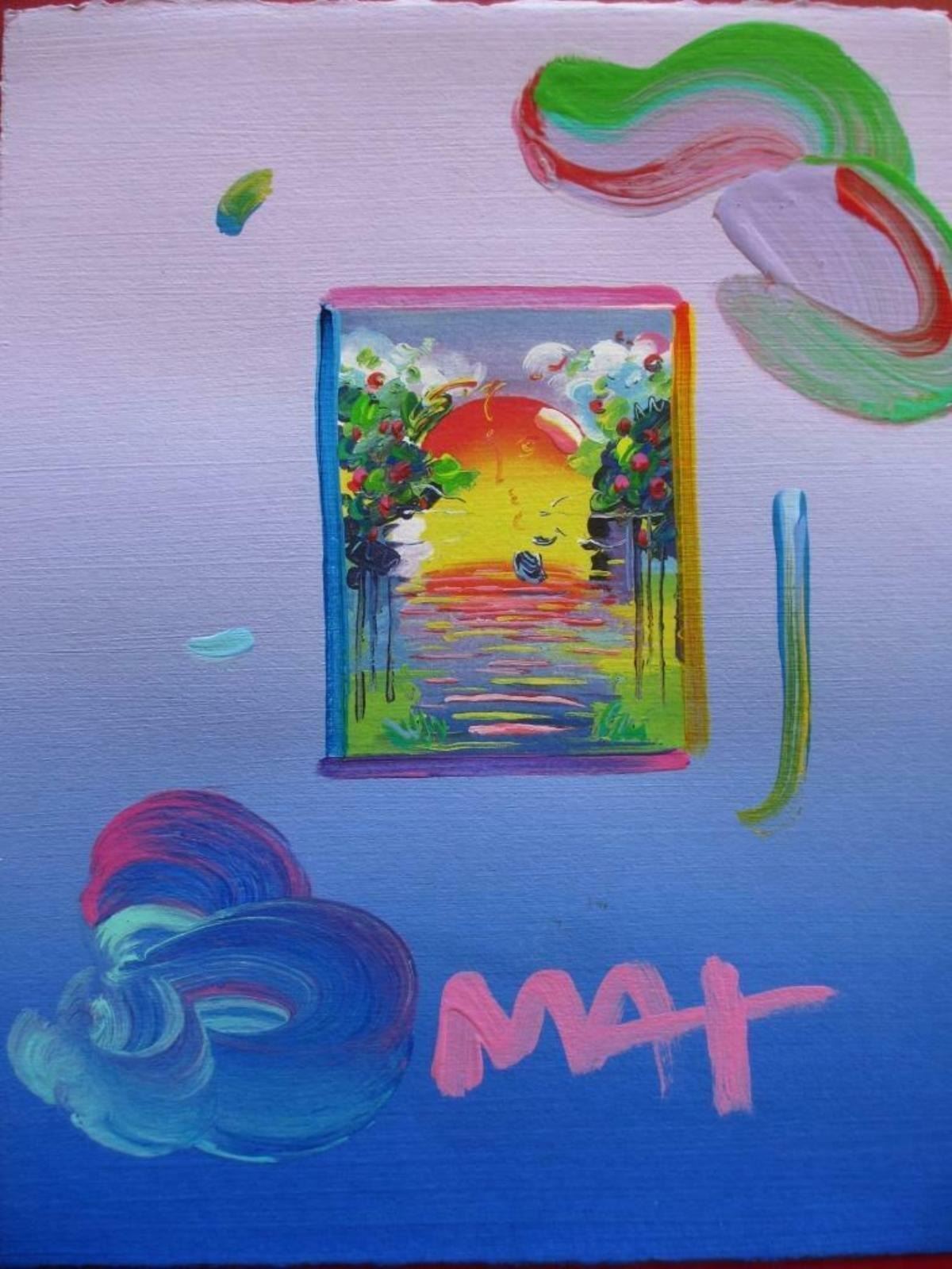 Peter Max "A BETTER WORLD (Pink/Blue)" Hand Signed Mixed Media with Acrylic with Peter Max Certificate of Authenticity Dimensions: 11 x 8.5 inches