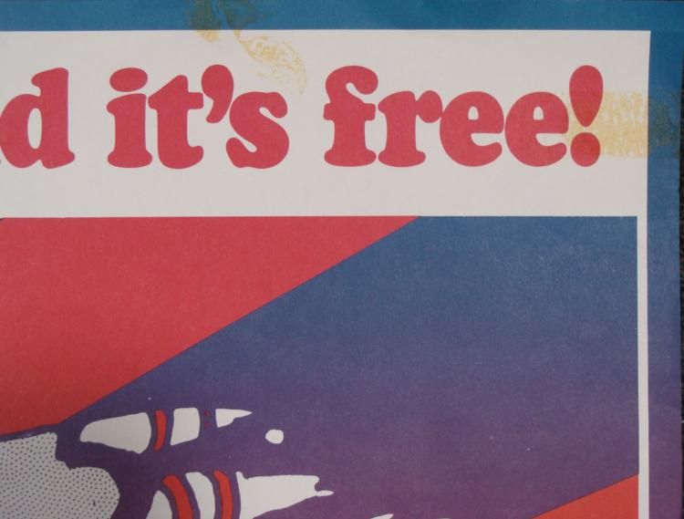 This enlightening vintage poster was created by the artist for the Brooklyn health fair, drawing attention to health services. Artist: Peter MaxYear: C. 1971sMedium: Poster print on paperImage size: 36 x 24 inchesCondition: Good; some edge wear, creases, wrinkling, and stainsBiography:Peter Max (1937-__) was born in Berlin, grew up in China, and traveled with his family to Israel and throughout Europe before eventually arriving in America. He began painting, and soon rose to prominence in the mid 1960's with expressionistic art that explored wild color juxtapositions. His work in the 1970's included a commission for a postage stamp in the theme of environmental preservation, a cause in which he devoted himself. Max has painted four former U.S. Presidents: Carter, Ford, Bush and Reagan. His concern for world peace has led to his involvement in some significant political events, including stamp designs for the first United Nations Environmental Summit, and a carving from a portion of the Berlin Wall. He has been the official artist for the World Cup USA, the Super Bowl, and the Grammy Awards. His awards are numerous, and include honorable recognition for product, fashion, food, book, and poster designs. His latest project is a collaboration with computer effects producer Silicon Graphics. Peter Max has continued his optimistic world vision into the new Millennium, and strives to be a "Global Artist."