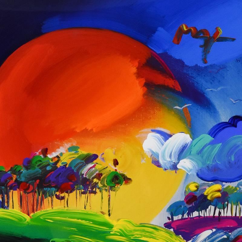 "Beyond Borders" is a one-of-a-kind acrylic mixed media on paper, hand signed by Peter Max. This piece comes custom framed. Includes Letter of Authenticity from Peter Max Studios and bears registration number inverso (316498). Measures approx. 34.5" x 46.5" (with frame), 23" x 35" (image).