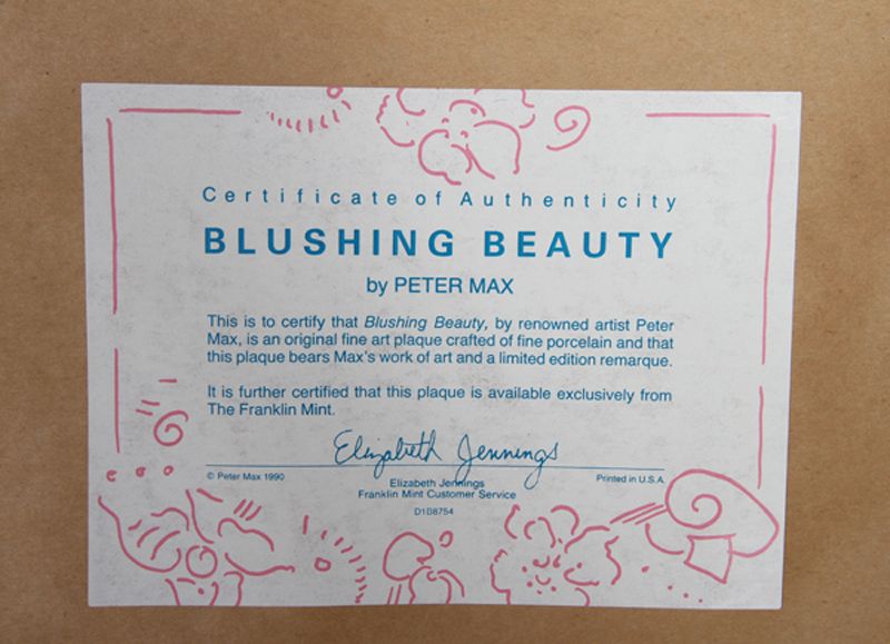 Peter Max, Blushing Beauty Plaque, Ceramic Tile