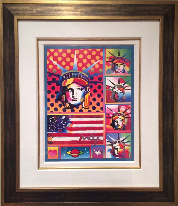 Peter Max, Five LIberties and Flag, Acrylic on Color Lithograph
