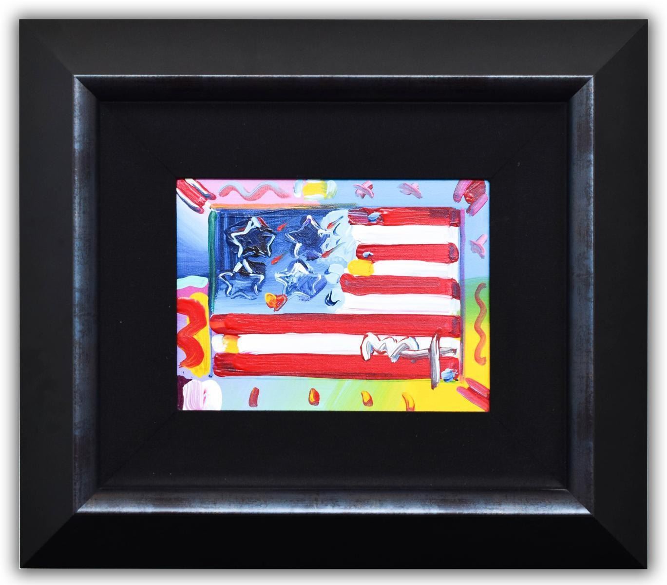 Artist: Peter Max. Medium: Original Acrylic on Canvas. Title: Flag. Size (Unframed): 9" x 12". Size (Framed): 20" x 23". Certificate of Authenticity: Is included. Additional: Catalogue#: 167430. Reference# 12529.