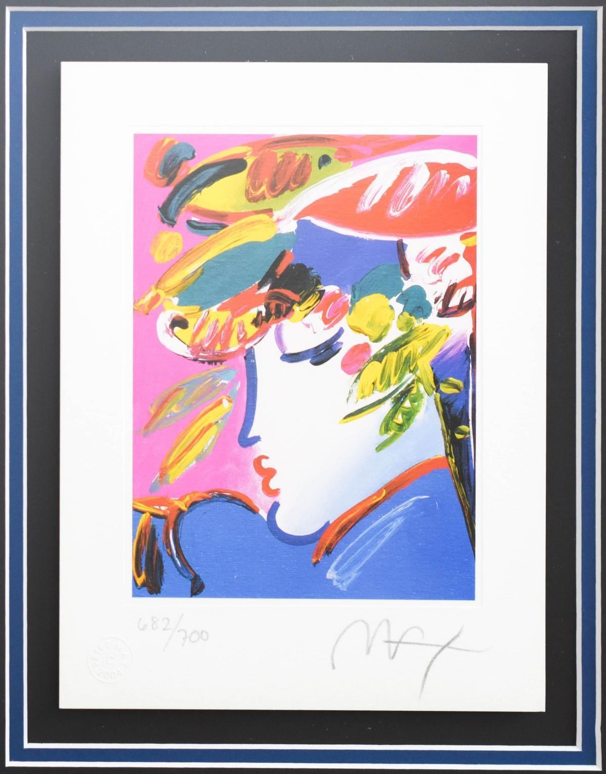 Artist: Peter Max. Medium: Original Lithograph. Title: Beauty (Mini). Size (Unframed): 8" x 6.5". Size (Framed): 17.5" x 16". Limited Edition: Numbered 682/700. Certificate of Authenticity: From Peter Max Studio. Additional: Custom framed. Reference# 11761.