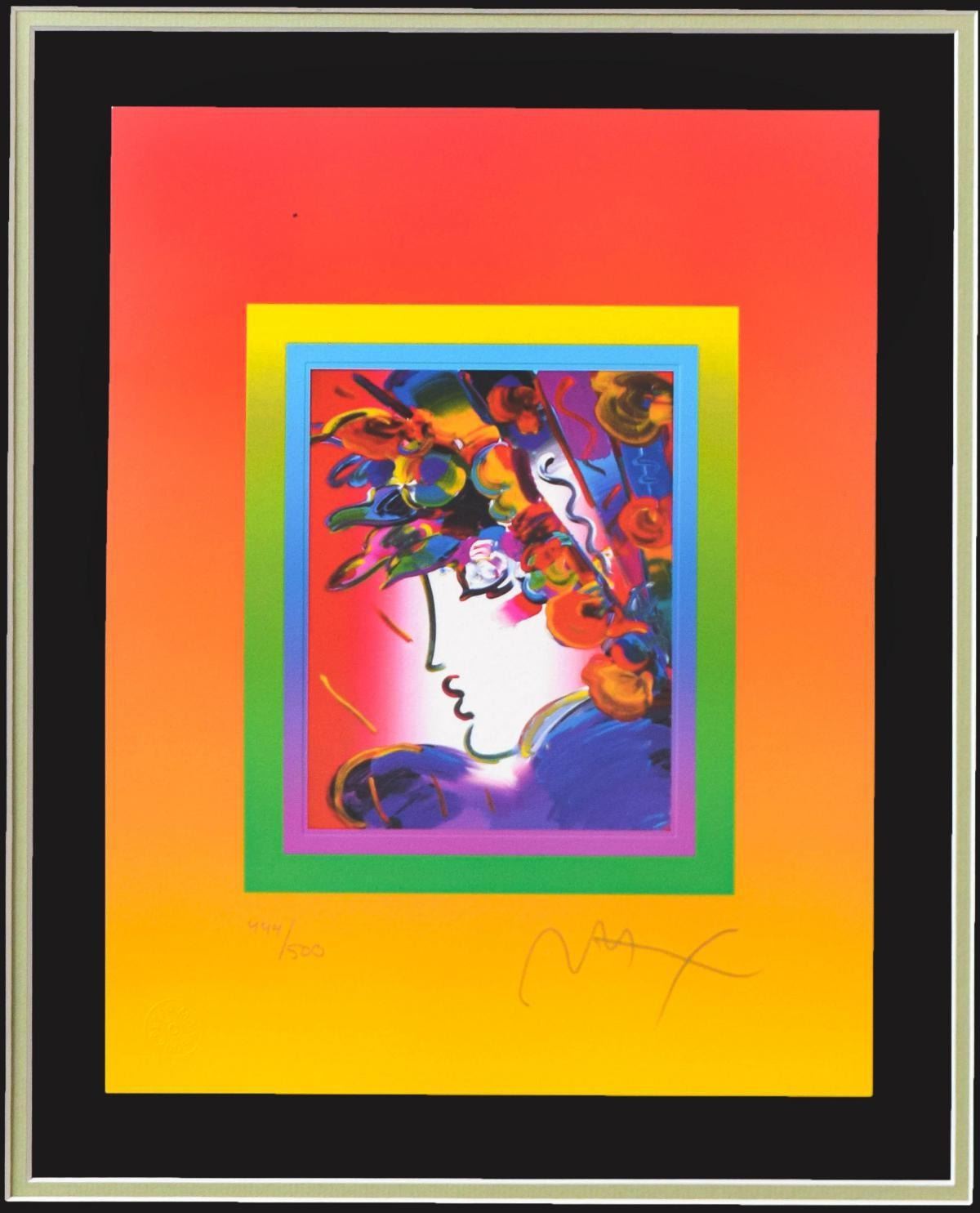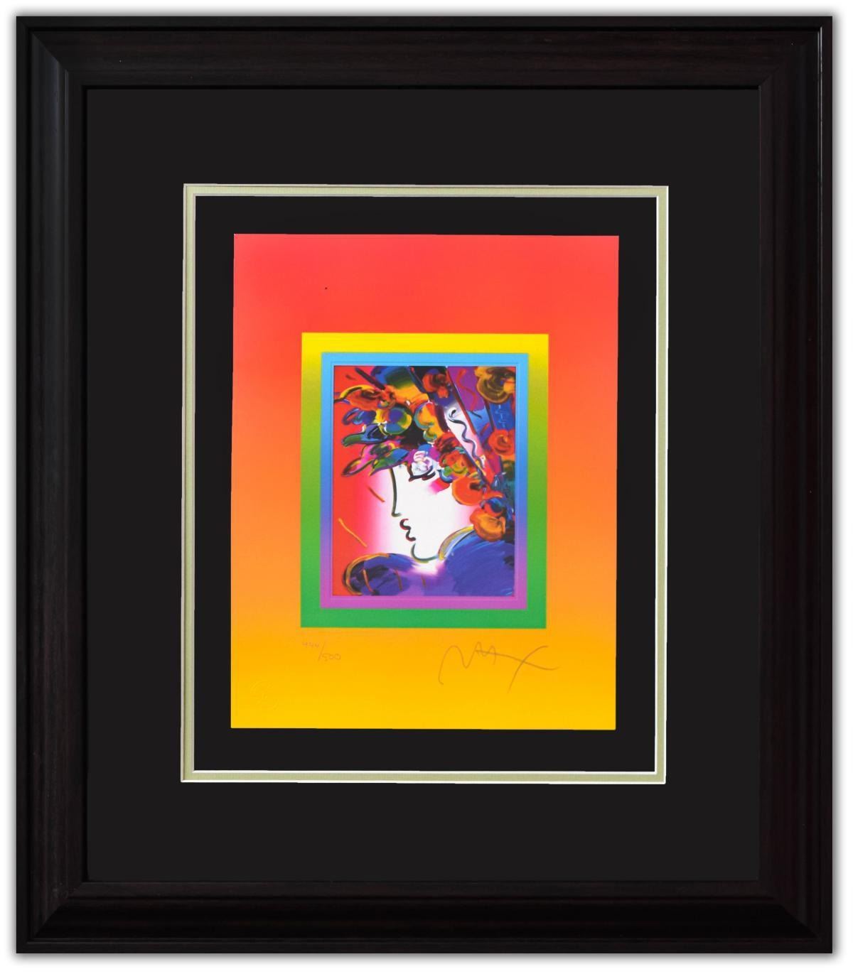 Artist: Peter Max. Medium: Original Lithograph. Title: Blushing Beauty on Blends III. Size (Unframed): 12.5" x 10". Size (Framed): 24" x 21". Certificate of Authenticity: From Peter Max Studio. Additional: Custom framed. Reference# 15897.