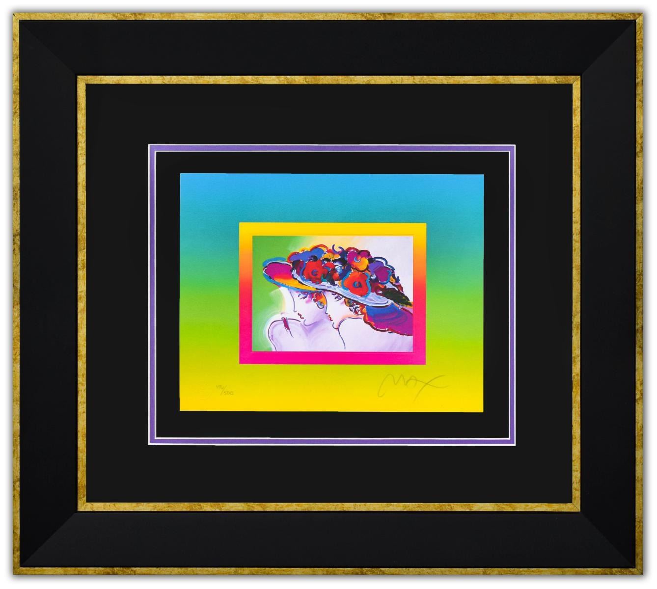Artist: Peter Max. Medium: Original Lithograph. Title: Friends on Blends. Size (Unframed): 10" x 12.5". Measures approx. (Framed): 24" x 27". Certificate of Authenticity: From Peter Max Studio. Additional: Custom framed. Reference# 15148.