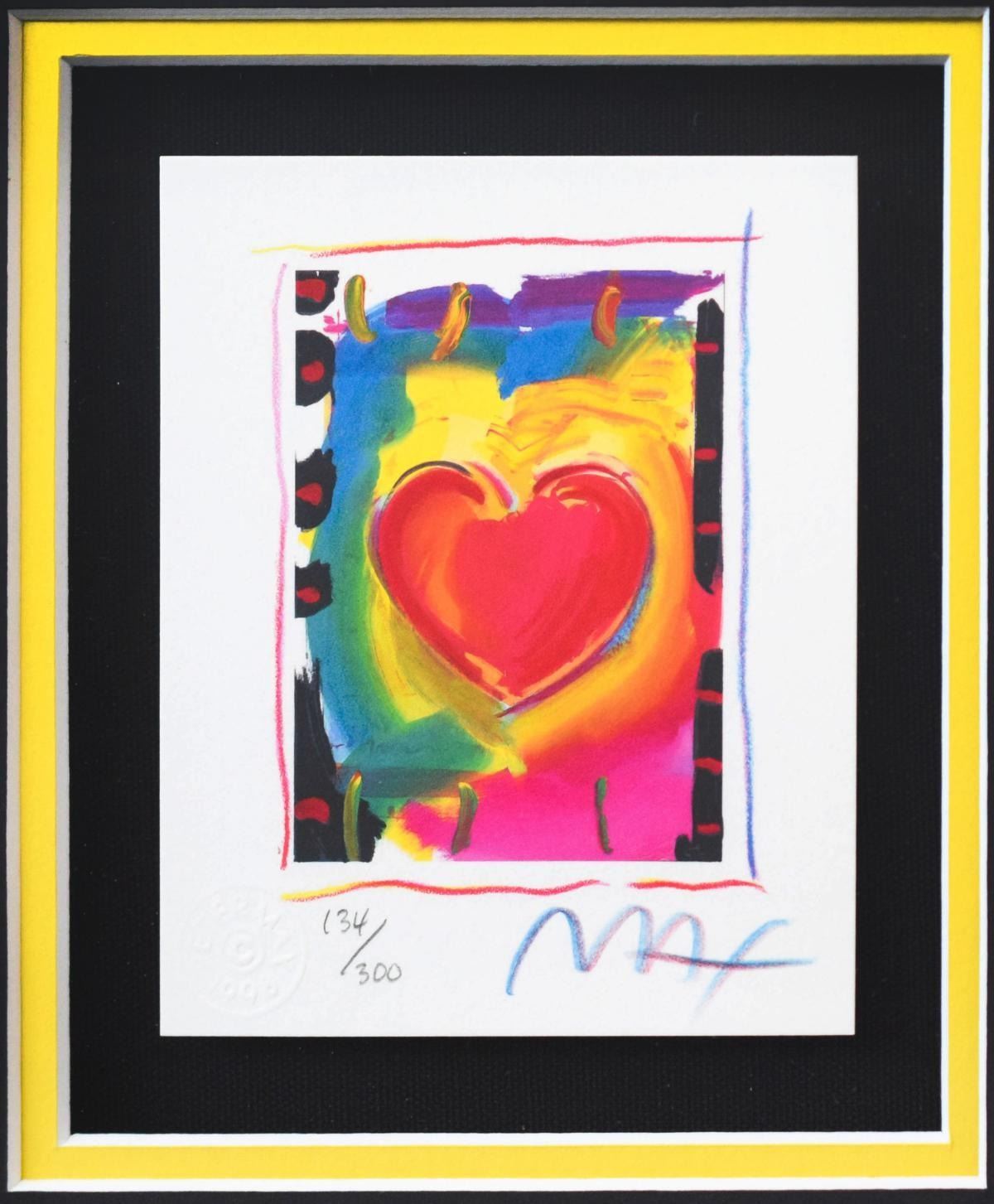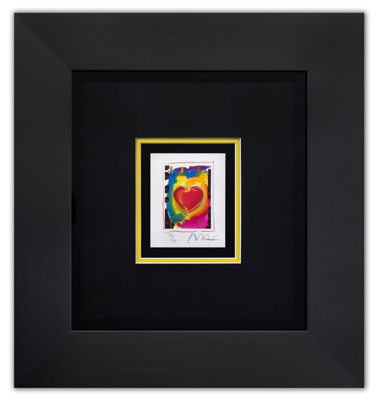 Artist: Peter Max. Medium: Original Lithograph. Title: Heart Series I. Size (Unframed): 5" x 4". Size (Framed): 19.5" x 18.5". Certificate of Authenticity: From Peter Max Studio. Additional: Custom framed. Reference# 14109.